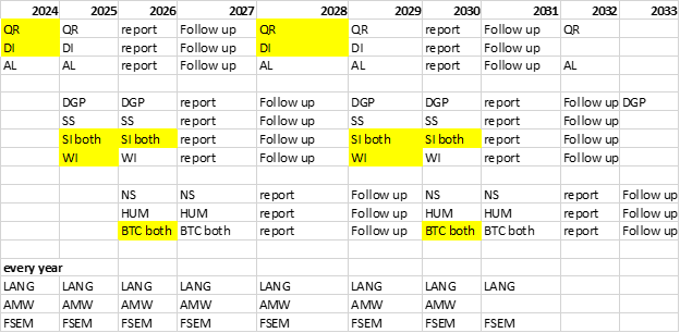 Schedule for General Education Assessment 2024-2033