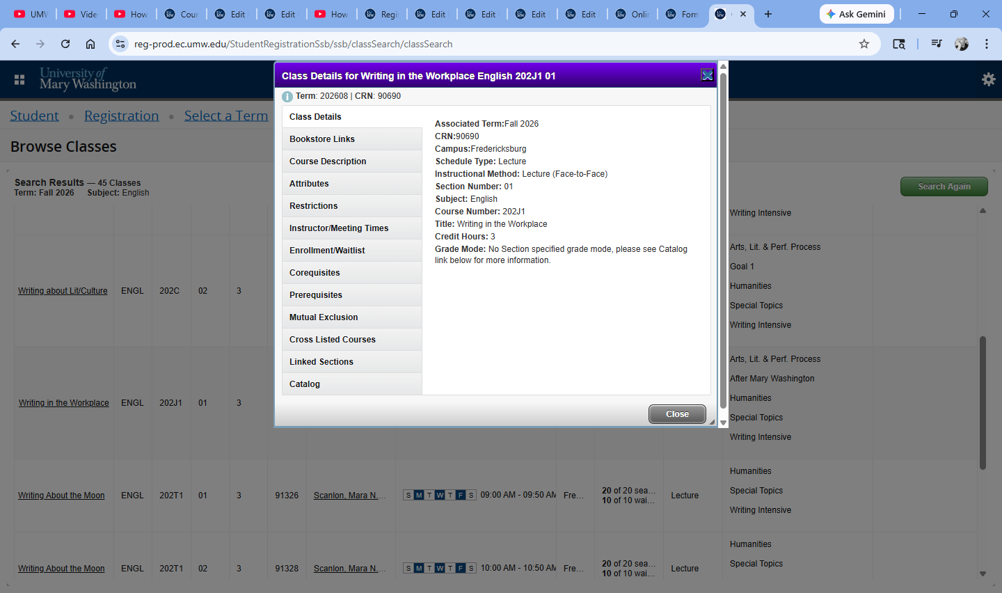 Search results will provide specific information for every each course on the schedule. Click on the title link of a course for the ability to view additional details such as course description, link to our bookstore, and course restrictions and prerequisites if applicable.